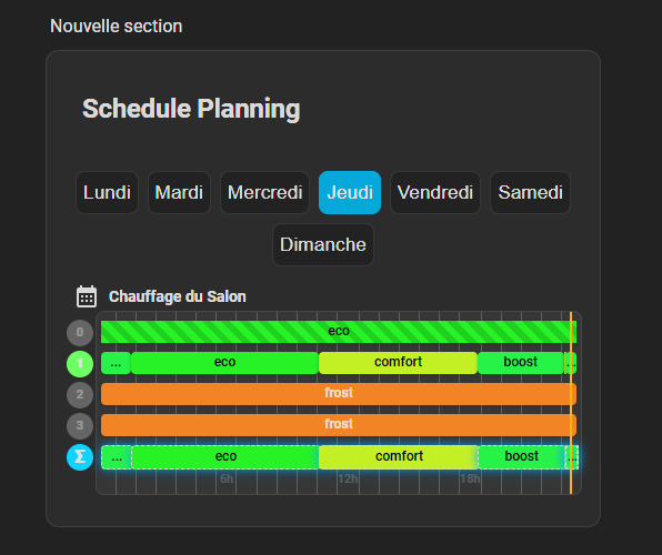 J’ai quand même ajouté une condition de présence ON pour la dernière plage du planning , d’ou le fait qu’elle apparait en ligne 2, mais ça ne me semble pas nécessaire vu que ça a fonctionné sur une plage qui n’a pas cette condition.