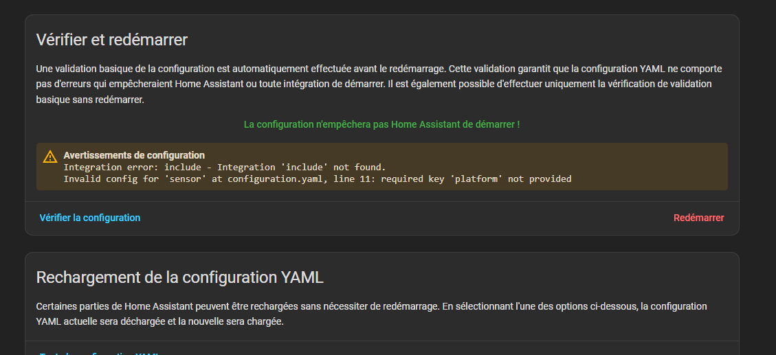 Question : j’ai quand même un souci majeur car tous les modules complémentaires ne veulent plus s’afficher, Z2M, Studio code, Sqlite, NodeRed, etc… le reste des TdB s’affichent normalement . J’ai aussi eu des lenteurs énormes sur studio code pour modifier le yaml, ensuite j’ai modifié en externe, et là aucun de ces modules ne veut s’afficher. Lié à cette implémentation ou pb dans mon HA pour autre raison ? je ne sais pas encore… Ça ressemble fort à ce que j’ai eu hier aussi… Je reverifie mes yaml
