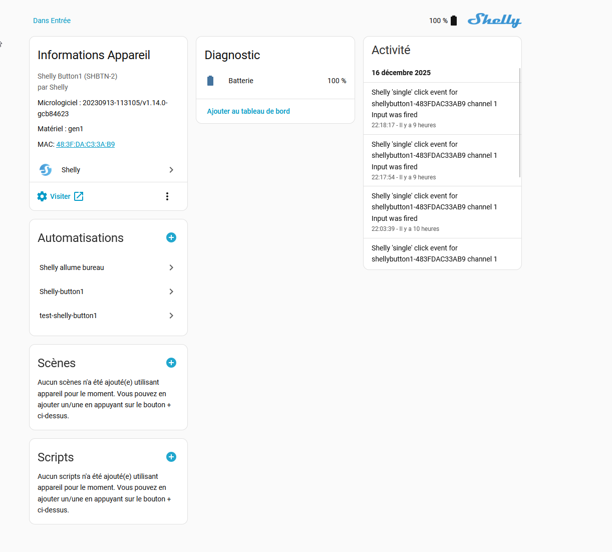 Bizzare que je soit le seul a avoir des problème avec le shelly button sous HA