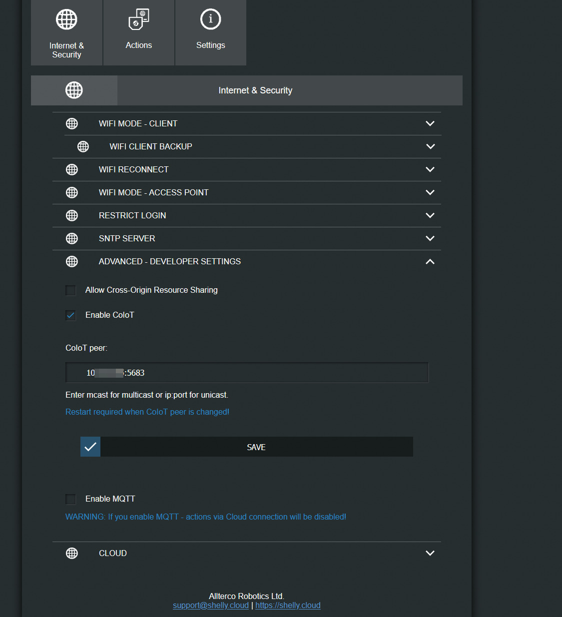 J’ai bien paramétré le Shelly avec le CoIoT peer