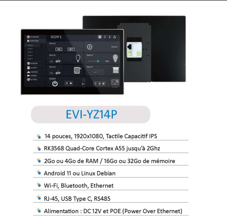 Sur leur site ils ont toute une gamme d’écran, certaines avec des caractéristiques intéressantes : Voici YziPanel, l'unique tablette Android compatible VESA avec port Ethernet POE conçue en France