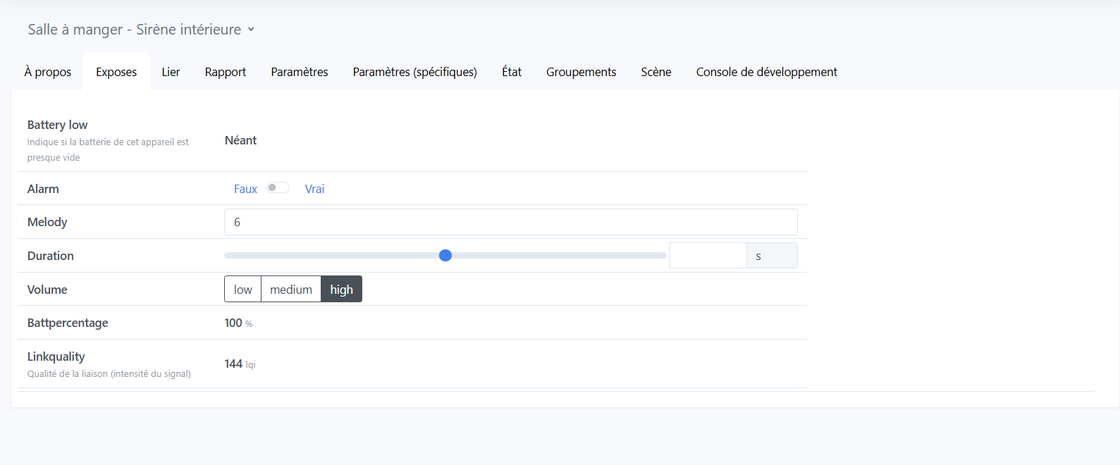 je me permets de rebondir sur ton poste, j’ai aussi une Sirène Neo ZigBee, je souhaiterais savoir comment tu as fait pour changer de mélodie pour une sonnerie type carillon et comme sonnerie d’alarme ?