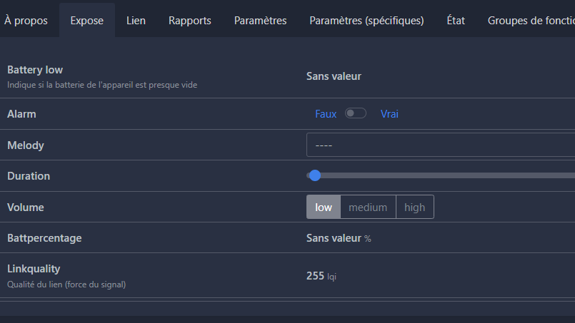 Hors voila, la clé skyconnect a bien reconnu la sirène sous ZHA mais il n’y a qu’un commutateur on off. Impossible de changer de sonnerie ou de régler le volume.