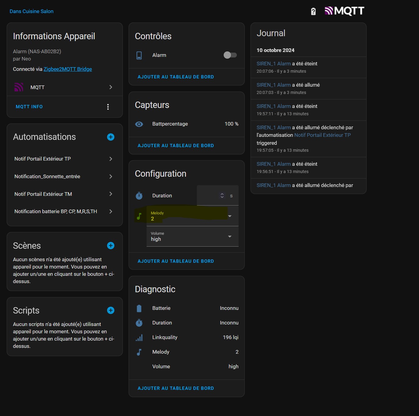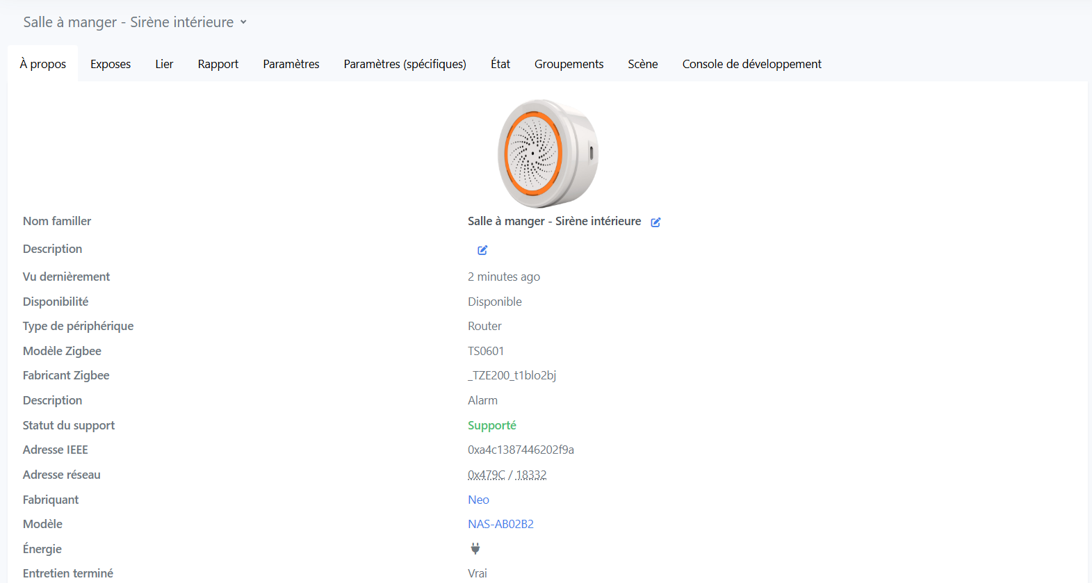 j’ai acheté la sirène NEO zigbee pour l’utiliser comme carillon et comme alarme.