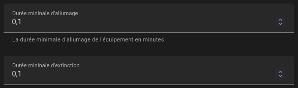 D’ailleurs j’ai pu constater qu’on ne peut pas mettre moins d’une minute de temps minimal de fonctionnement