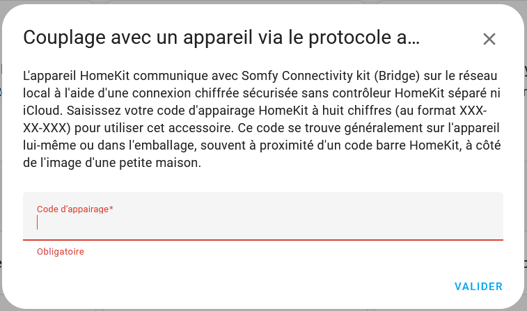 Non overkiz c’est pour utiliser la configuration distante de somfy. En local il faut ( il suffit) utiliser l’intégration HomeKit. C’est bien mieux car indépendant du WAN