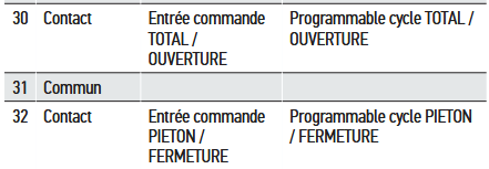 oui sa pourais etre ca , le test est simple generalement tu prend juste une bout de cable et tu fait un contact entre commun et 30 et le portail devrais s ouvrir . c est sur ses contacts que se branche les boutons ou les contacteurs a clef