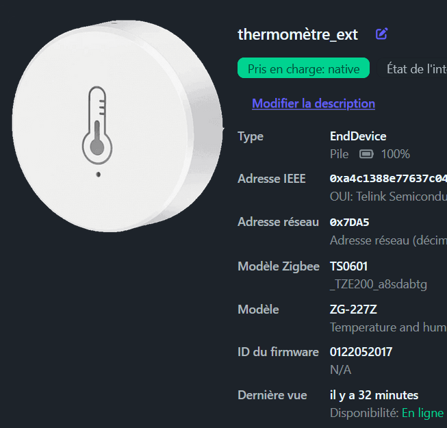 Lorsque je le rentre et le place à côté d’un autre capteur les remontées se font bien, là je l’ai remis à sa position habituelle (à noter qu’avant le linkquality été à plus de 100, j’ai changé les piles, pas mieux):