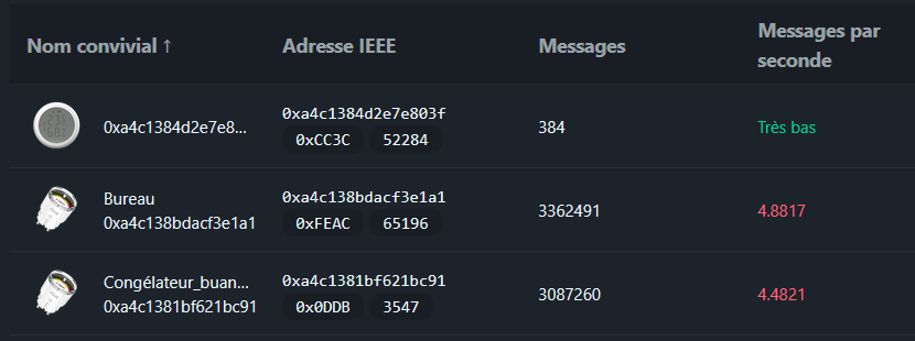 Après vu les LQI, même si c’est subjectif, le réseau n’est pas au mieux de sa forme. Eventuellement il faudrait ajouter un routeur entre le coordinateur et les 2 points bleus si ils sont éloignés, ça devrait probablement améliorer les choses sans certitude. Voir peut être à changer de canal zigbee si il est trop proche du wifi si il est utilisé, il faut jeter un oeil suivant les voisins ou pas, c’est peut-être eux qui ont ajouté un truc. Les ondes c’est tjs compliqué.