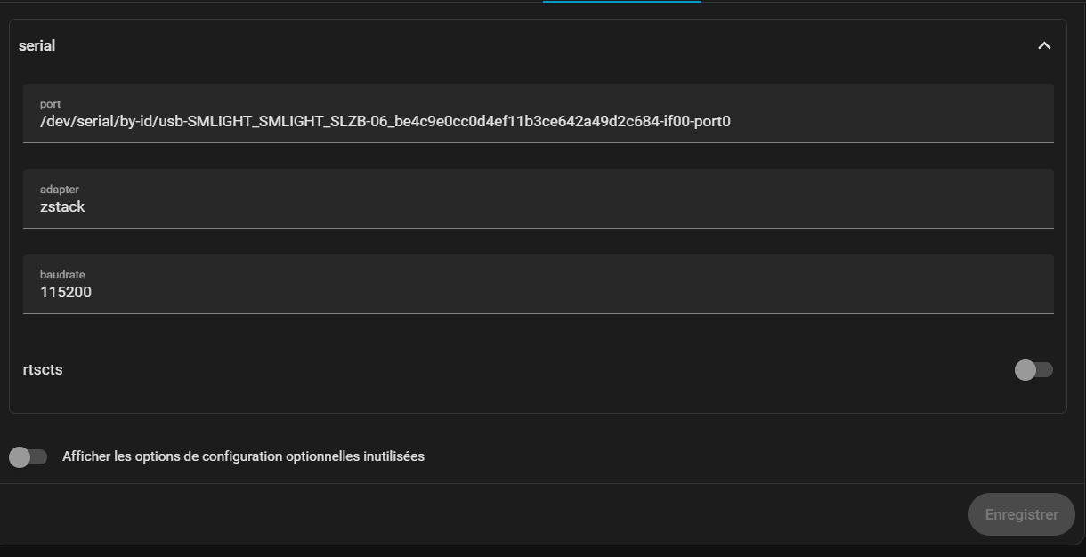 [2026-01-23 18:32:52] info: zh:zstack:znp: Opening SerialPort with {"path":"/dev/serial/by-id/usb-SMLIGHT_SMLIGHT_SLZB-06_be4c9e0cc0d4ef11b3ce642a49d2c684-if00-port0","baudRate":115200,"rtscts":false,"autoOpen":false}