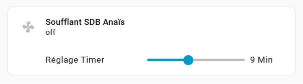 J’ai tant bien que mal réussi à créer cette carte qui me permet de configurer un minuteur pour le chauffage soufflant électrique de ma salle de bain.