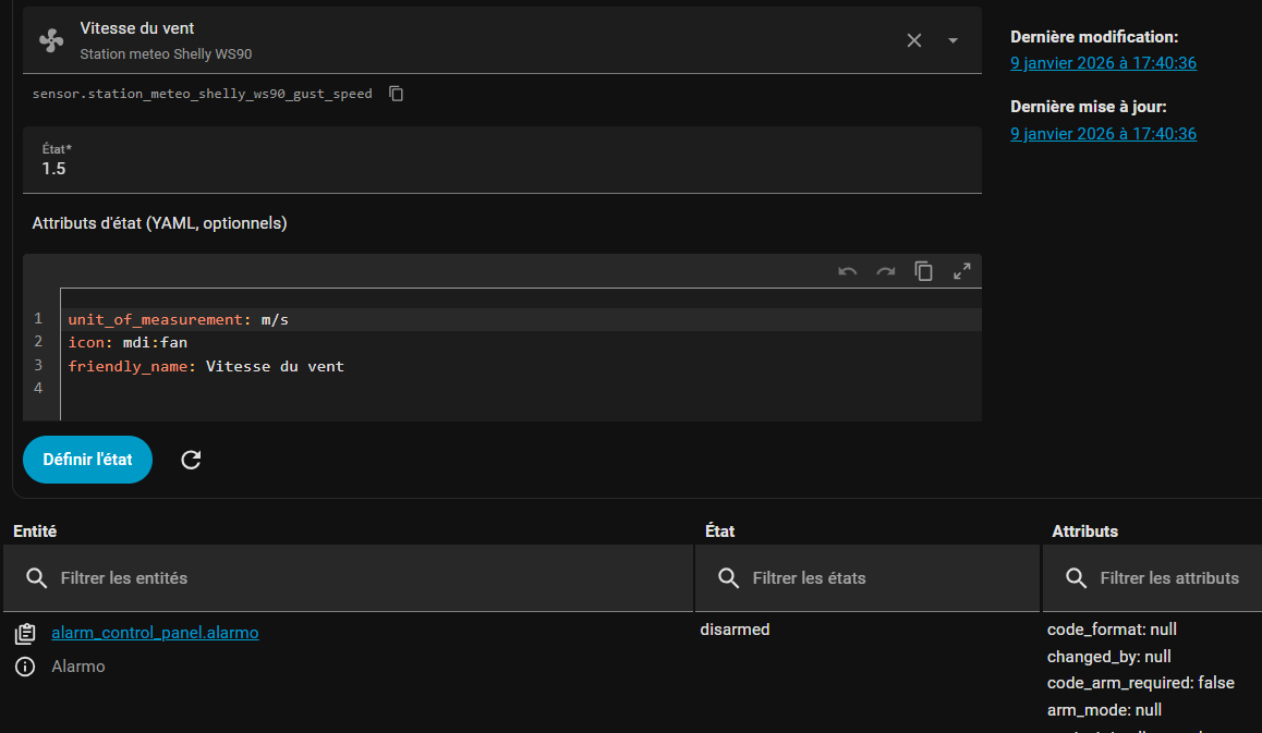 Tu peux vérifier ton sensor dans le mode développement Etat