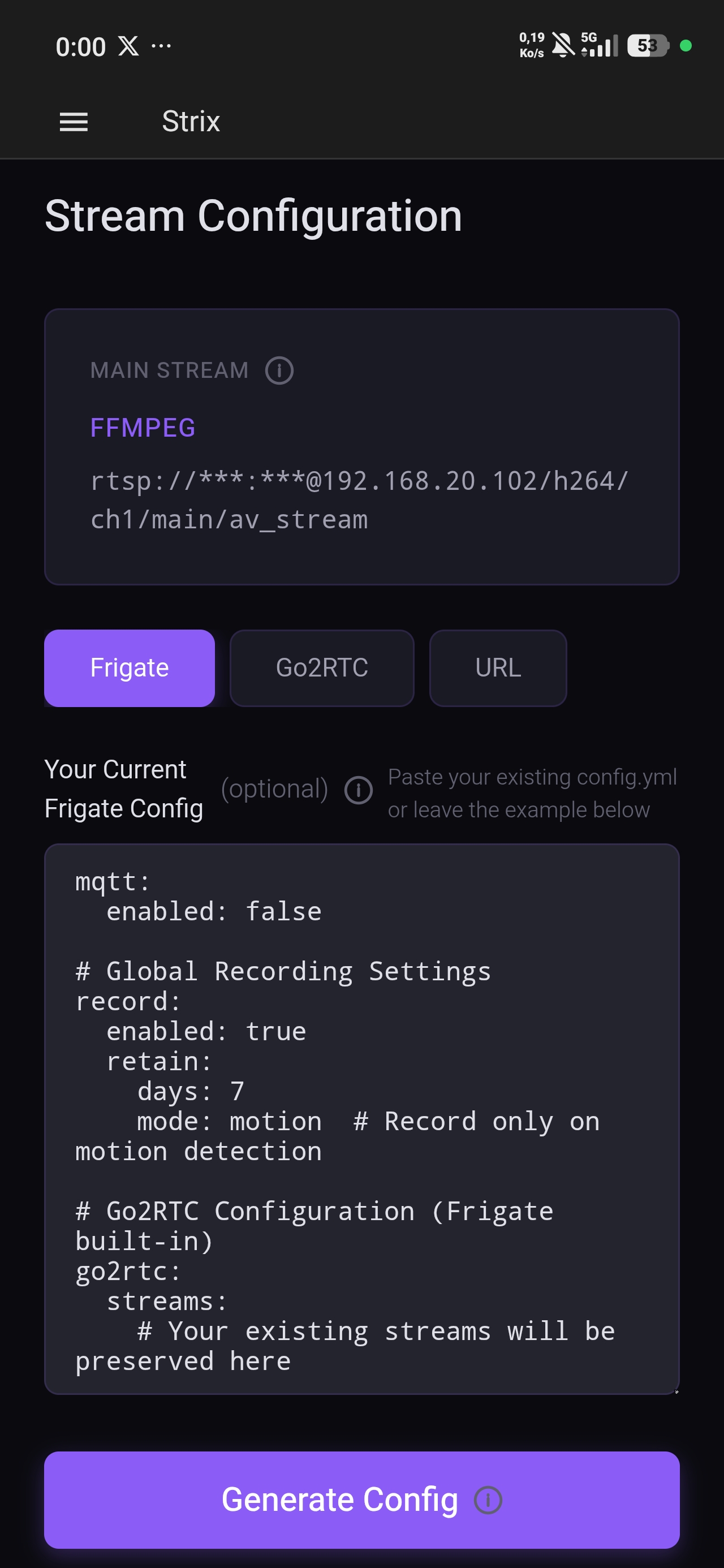 J’ai testé ça ce matin est c’est vraiment pas mal. Ça simplifie pour trouver l’URL du flux vidéo et pour ce qui font leurs premiers pas dans frigate ça génère la config yaml