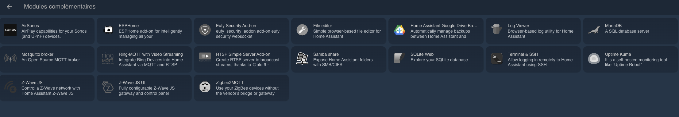 Mon ha redemarre, et la j’ai un comportenant bizarre : les services (terminal, file editor, zwave JS, zigbeetomqtt et tout les autres m’indique quand je clique sur le lien du menu qu’ils ne sont pas démarrés.