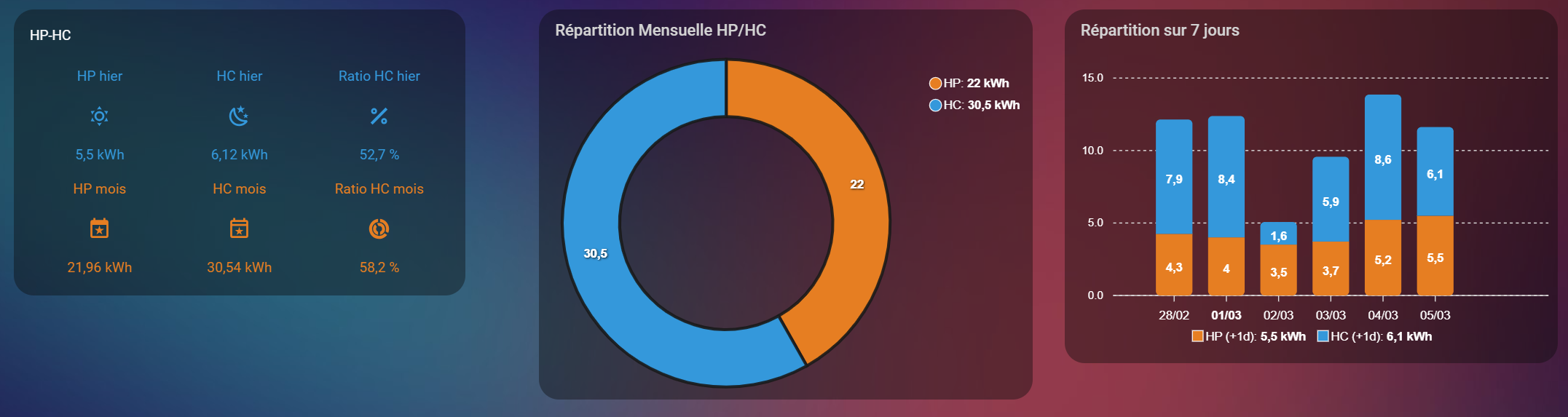 Après 5 jours de vérification, je me suis aperçu d’un écart de 300 watts journalier dans les heures pleines (comparaison entre le dashboard HA, enedis et edf).