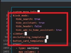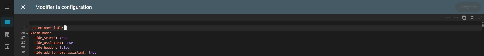 En gros, le code à mettre pour kiosk-mode , tu vas dans le dashboard. Puis le crayon en haut à droite, puis les 3 points et Éditeur de configuration.
