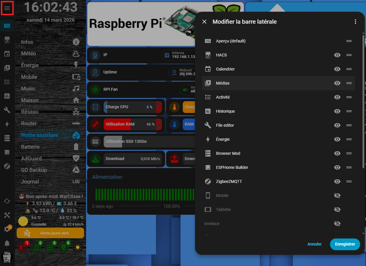 En passant par paramètres / dashboard, on a pas accès à tout.