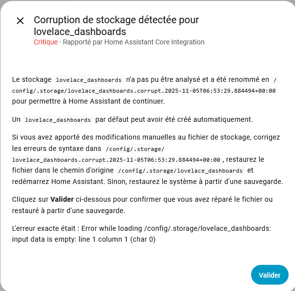 Le plus rapide serait de récupérer lovelace_dasboards dans ta dernière sauvegarde je pense.
