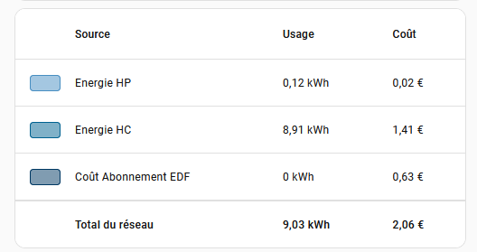Comment avoir tout betement un tableau récapitulatif des consommation en Kwh à la journée et des couts.