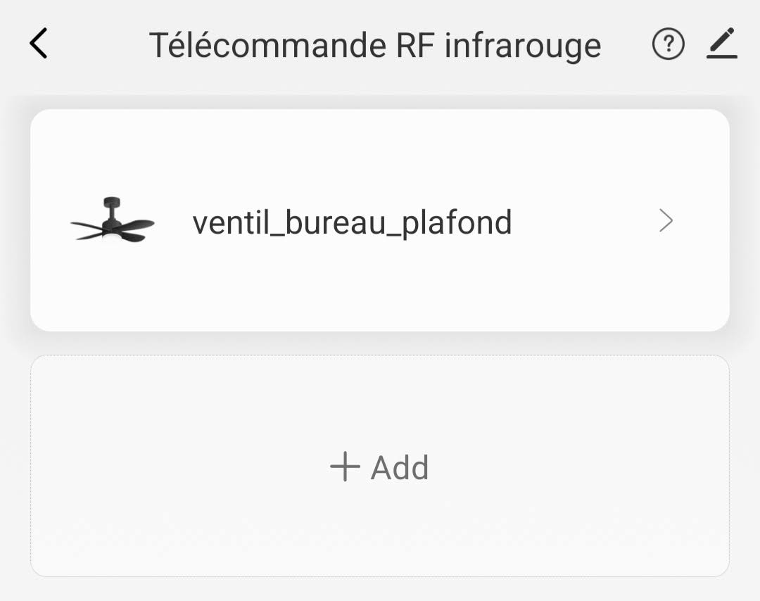 Je souhaite contrôler mes 4 ventilateurs de plafonds de marque CREATE avec HA. Aujourd’hui ils sont commandés par une télécommande RF.
