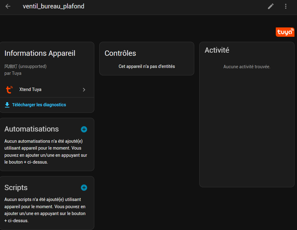 je crois pas que les commandes créées sous l’application Tuya remontent dans HA. Il faut les refaire de HA.