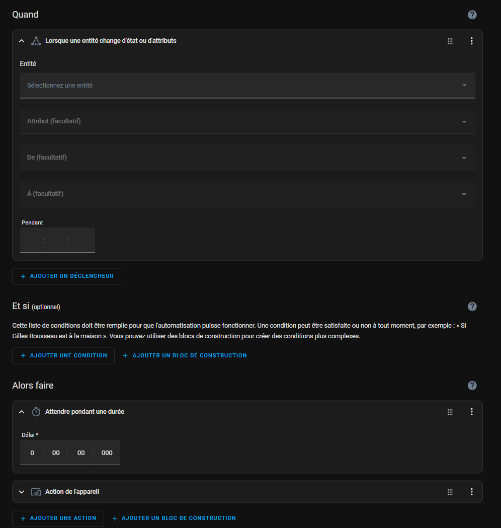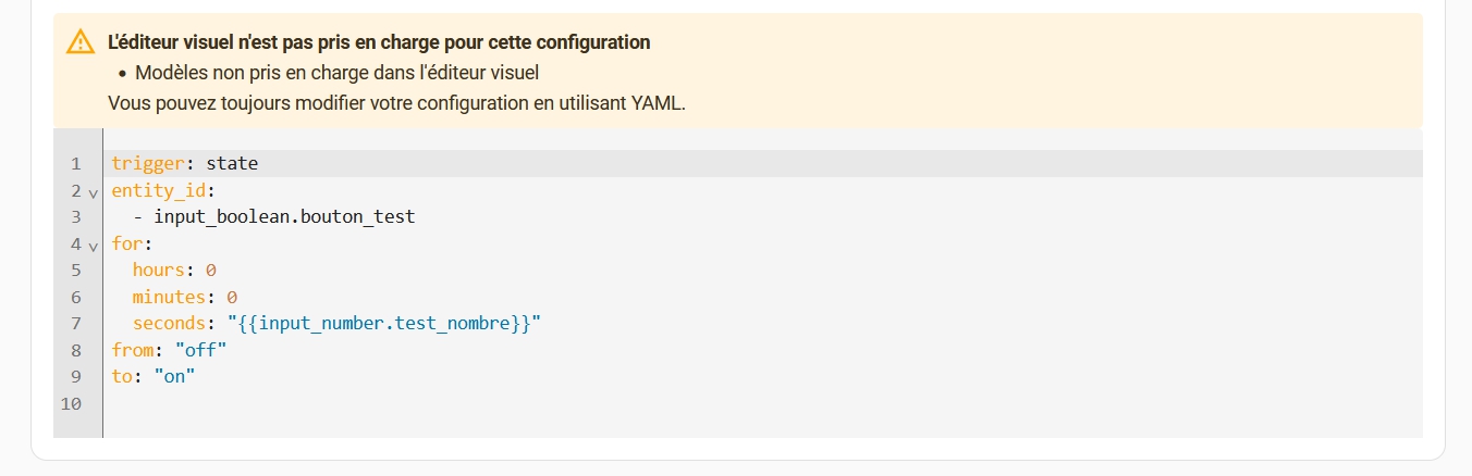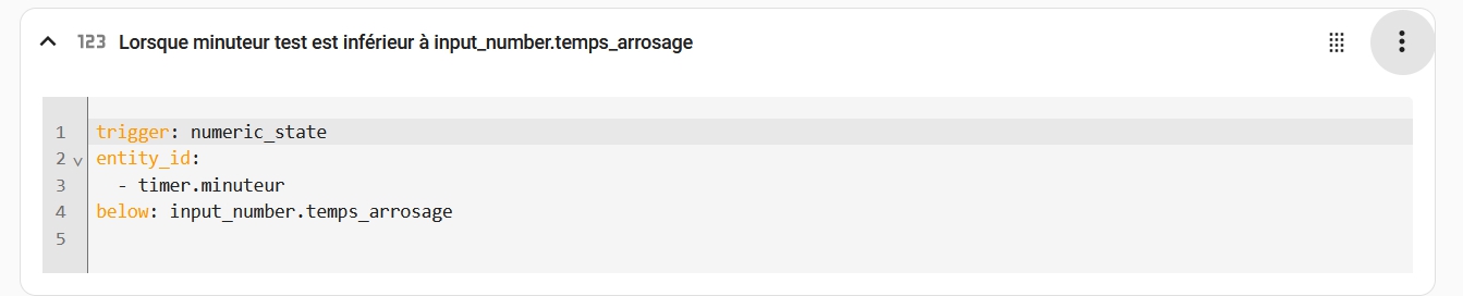 Ensuite, si tu veux utiliser ce minuteur dans une automatisation, je te conseille de faire cette automatisation à partir de l’UI aussi. Ce sera plus simple qu’en Yaml.
