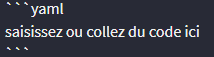 c’est la balise texte préformaté toujours, mais sur la première balise ``` tu ajoutes yaml
