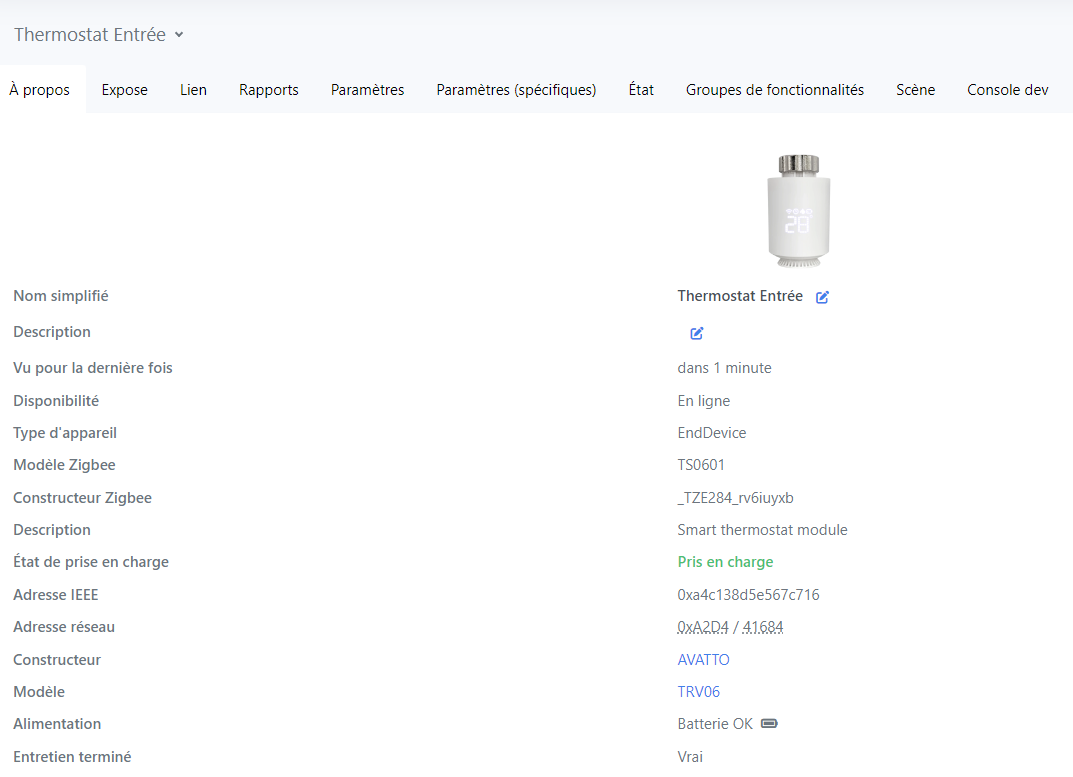Si vous avez des têtes thermostatique pour radiateur à eau avec la référence :THAH202001/TRV06, reconnu en _TZE284_rv6iuyxb sur HA, il faut créer un ajouter un converter ( fichier avec une extension .js ) :