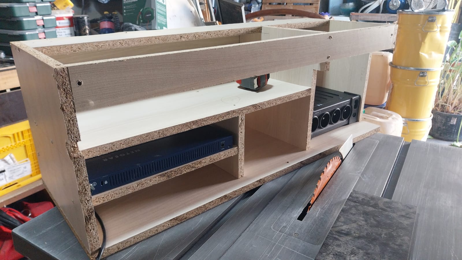 - 1 plateau avec la Freebox, le routeur TP-LINK Archer C7, la eedomus et le futur NUC avec HAOS qui remplacera la eedomus quand j’aurais réussi à paramétrer l’accès distant