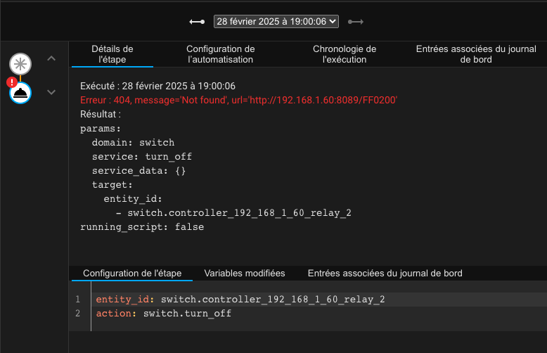 Je ne vois vraiment pas ce qui est mal paramétré, j’ai fait un copié collé du programme cité plus haut en remplaçant juste les entity par mes relais et rien ne fonctionne .