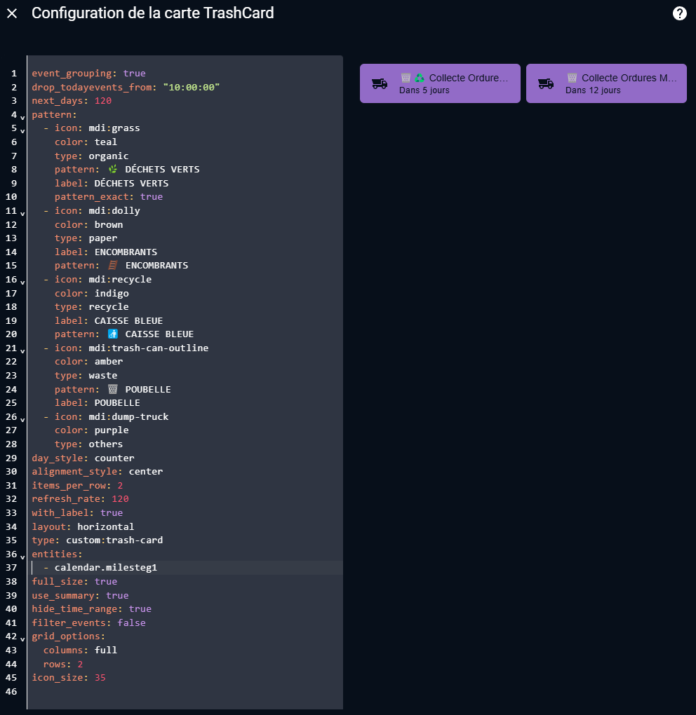 Et du coup , une fois le calendrier importé dans HA, comment la trashcard retrouve les événements ?