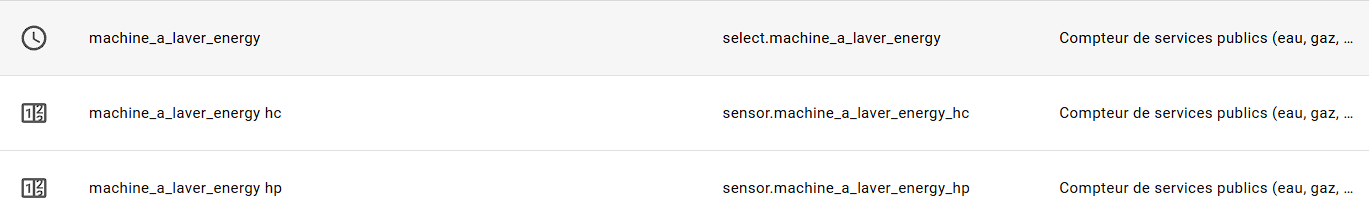 - 1 entrée de type « Compteur de services publics » pour enregistrer en temp réél la consomation du cycle de l’appareil électroménager en fonction de la plage horaire