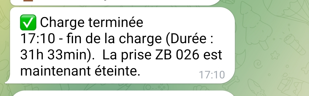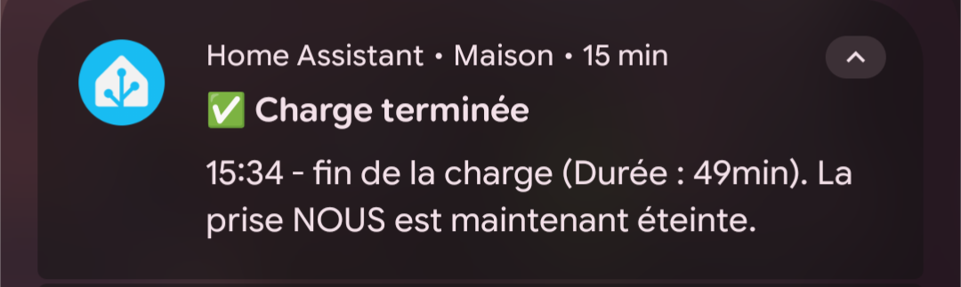 Lorsque la charge est terminée je reçois une nouvelle notification :