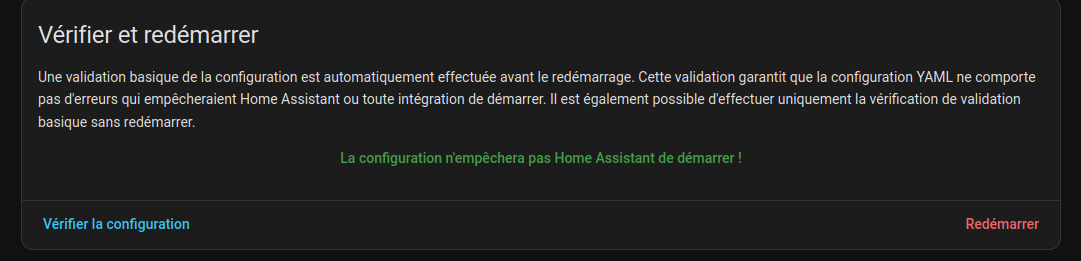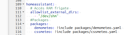 on va voir ce qui se passe dans configuration.yaml et on ajoute, attention si vous en avez déjà et attention à l’indentation.