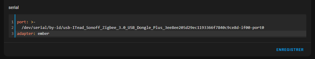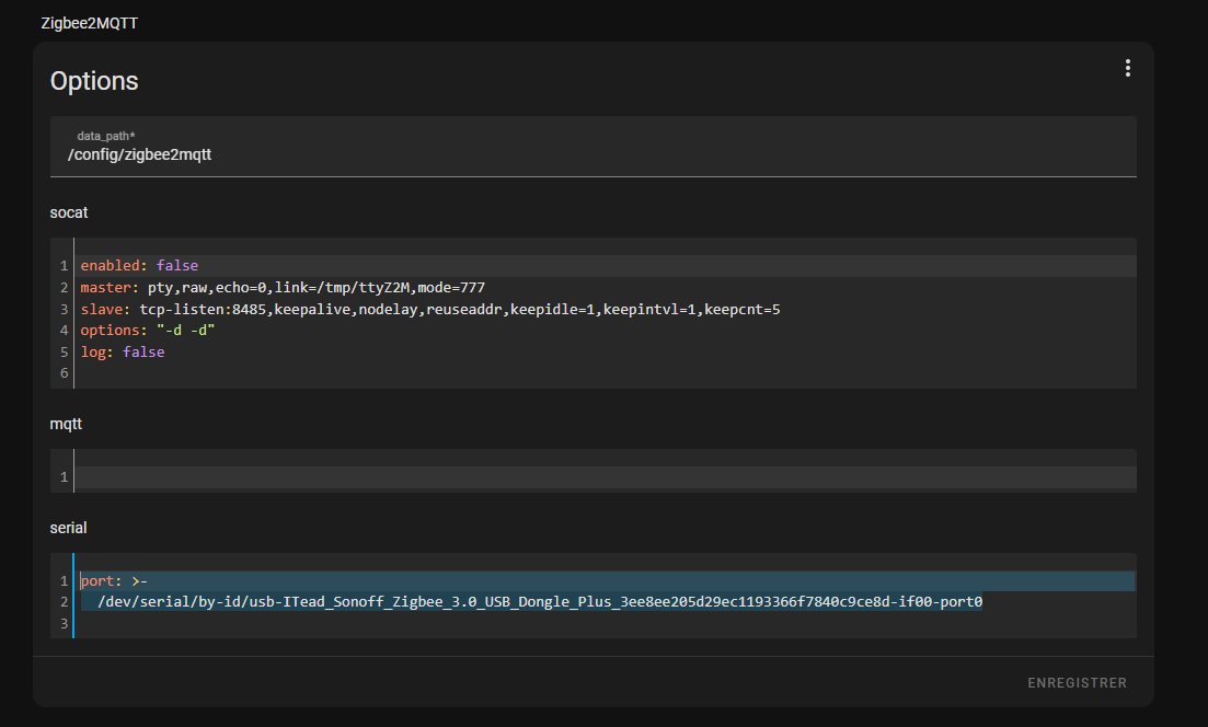 Faire attention à c’est note, si tu dois modifier ta configuration alors que tu as déjà lancé Z2M une fois.