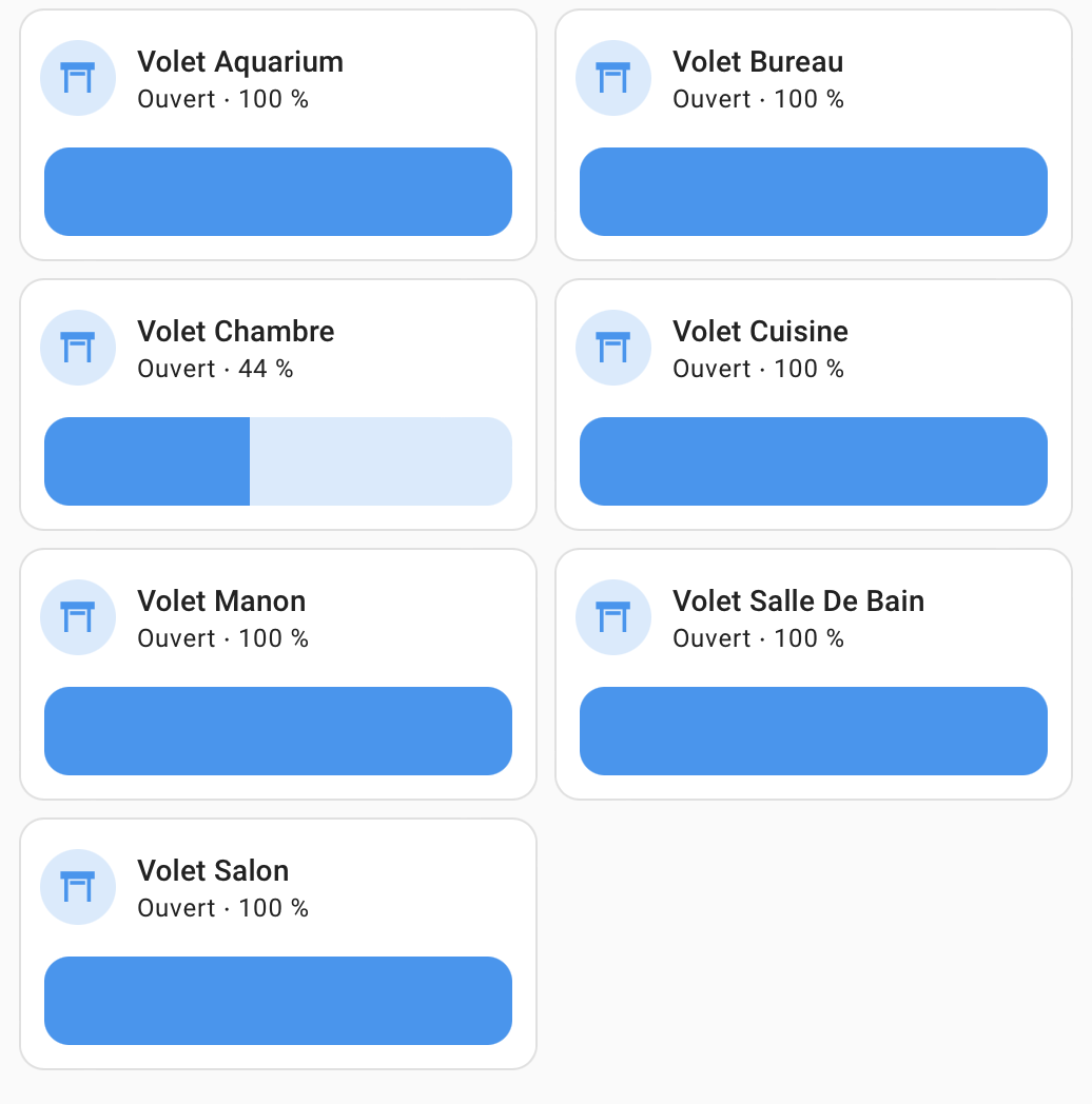 J’ai 11 volets Bubendorff pilotés via la passerelle I-Diamant et l’intégration Netatmo.