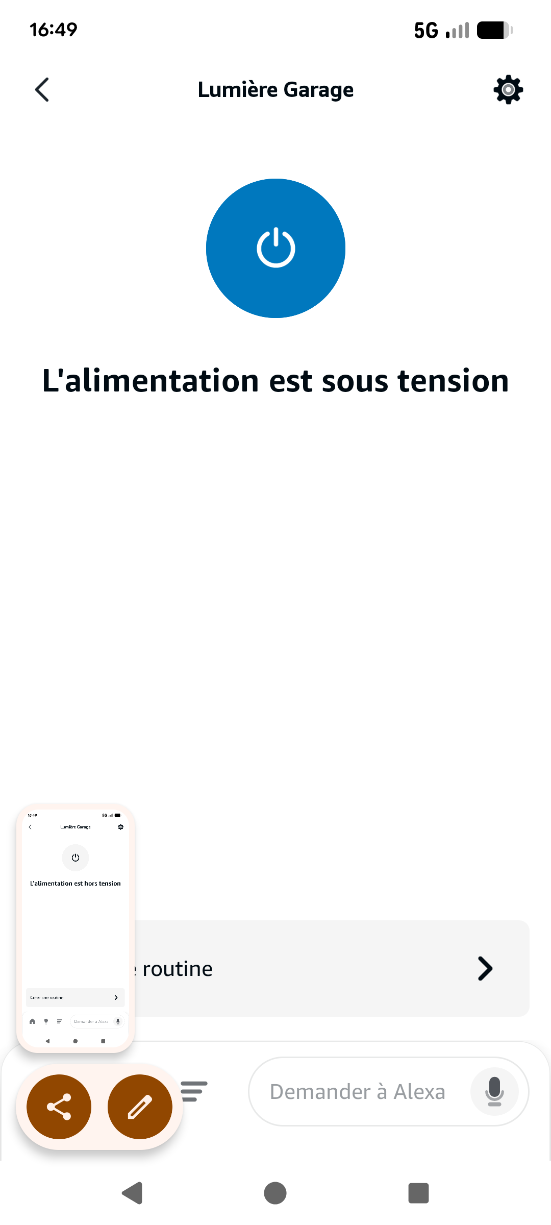 Oui j’ai bien créé 2 routines dans Alexa, une pour allumer, une autre pour éteindre.