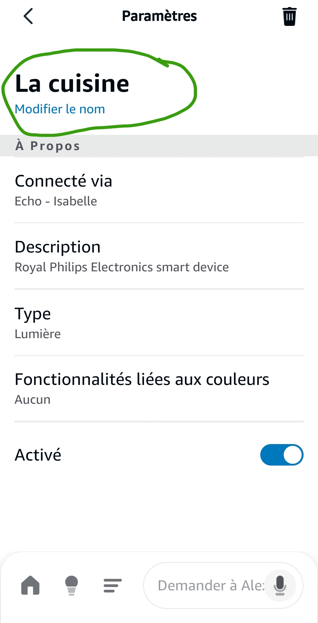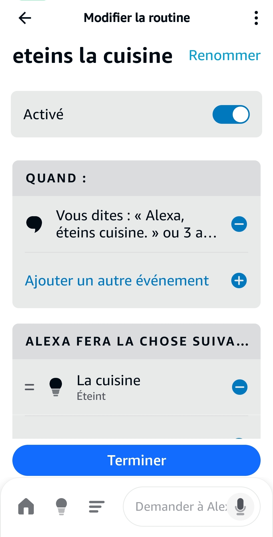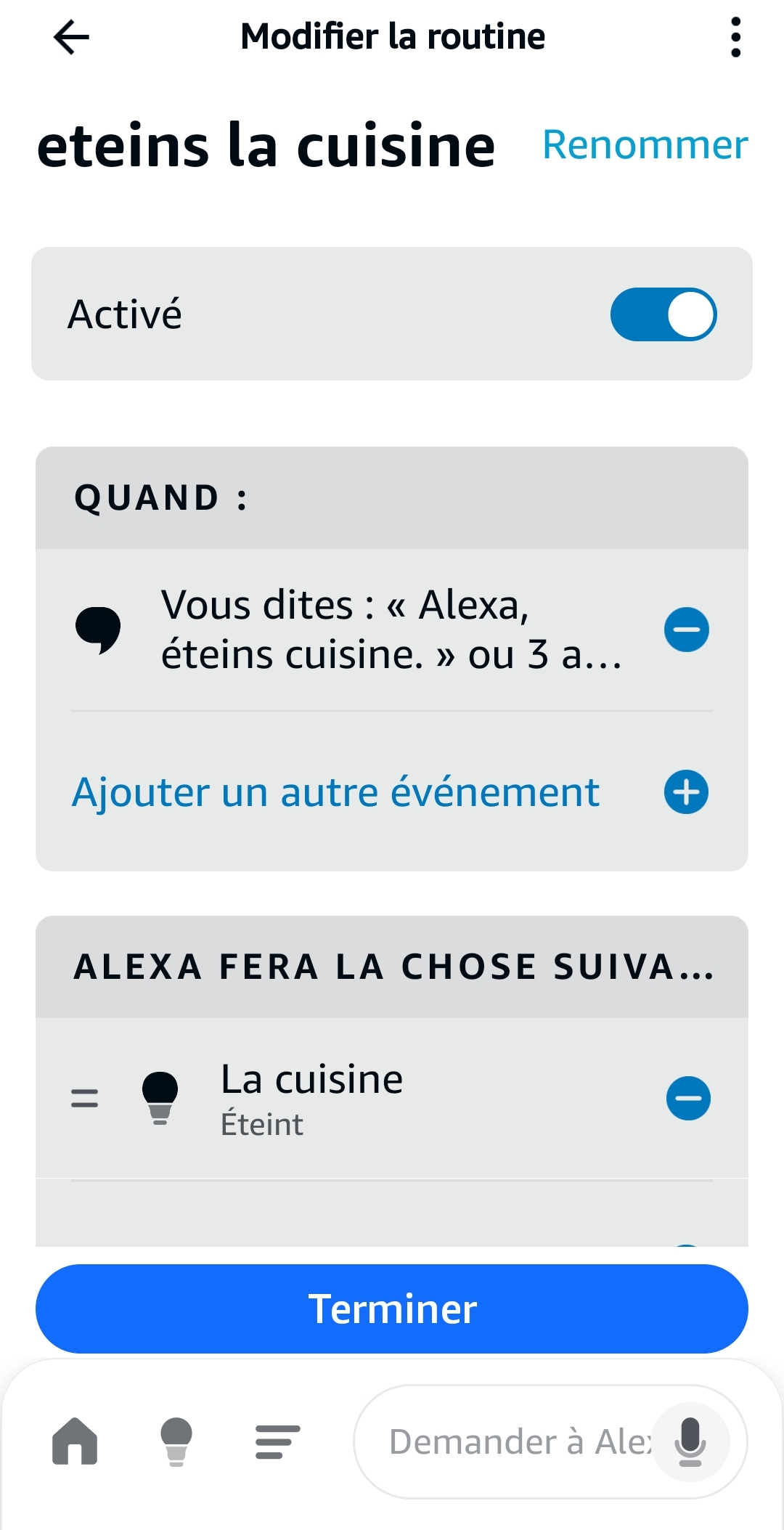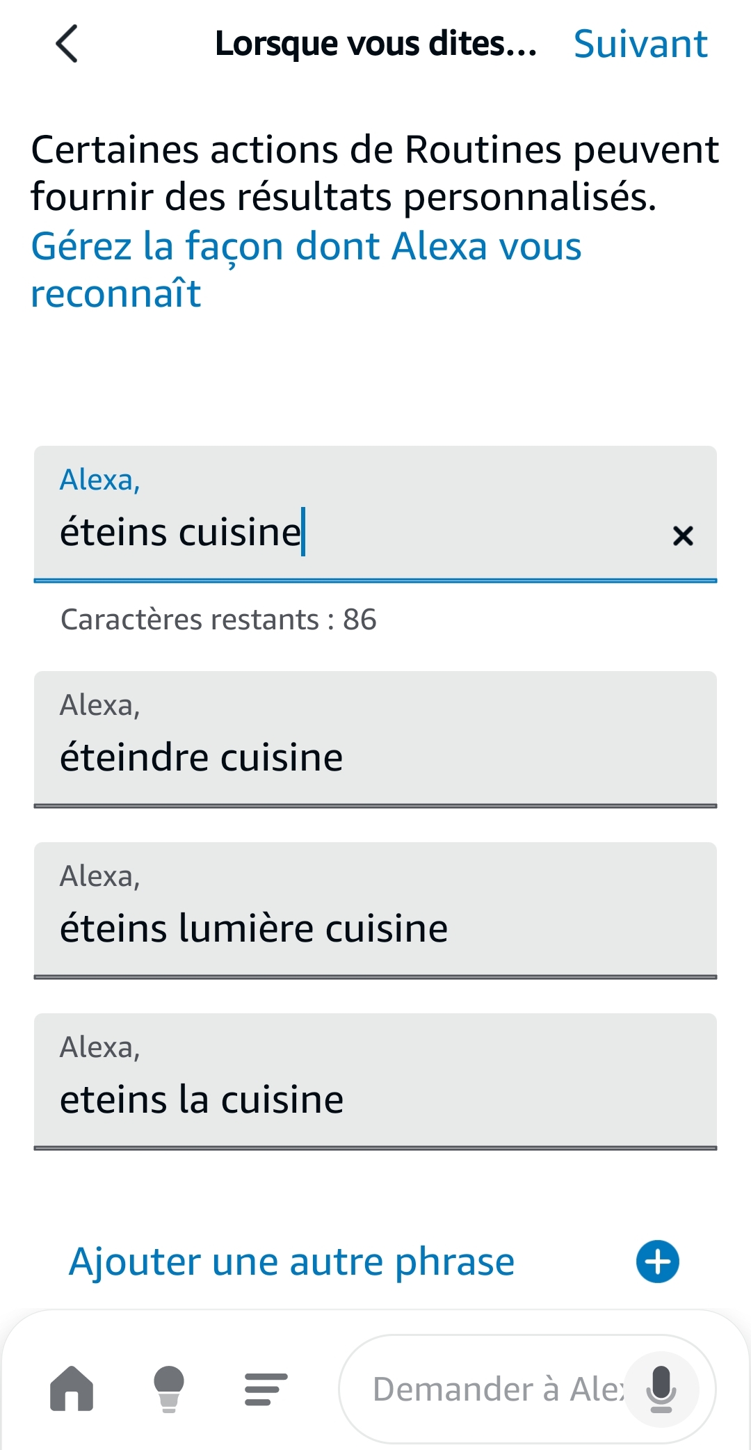 C’est étrange si tu crées la phrase « Alexa, éteins la cuisine » que ça ne fonctionne pas.