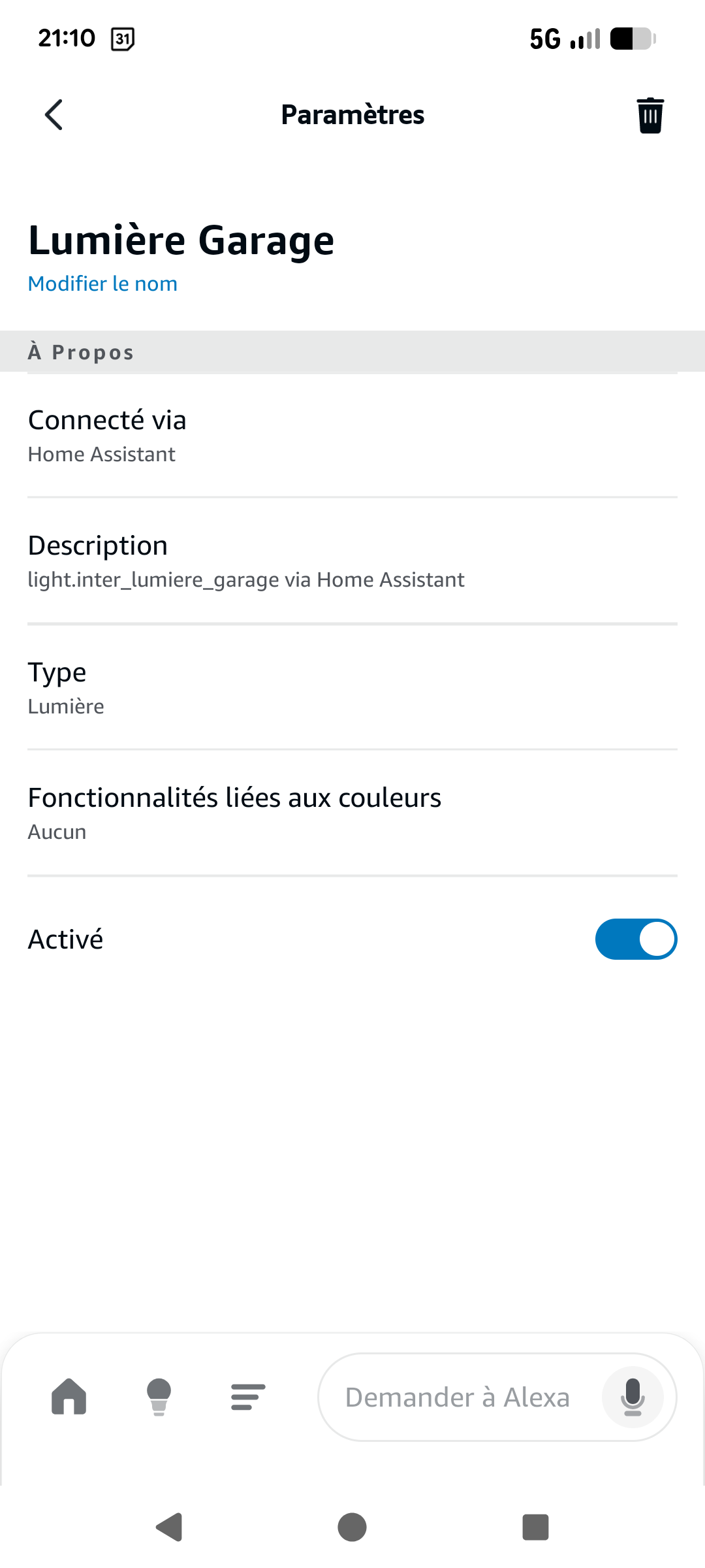 Je l’ai mis en lumière dans HA et Alexa.