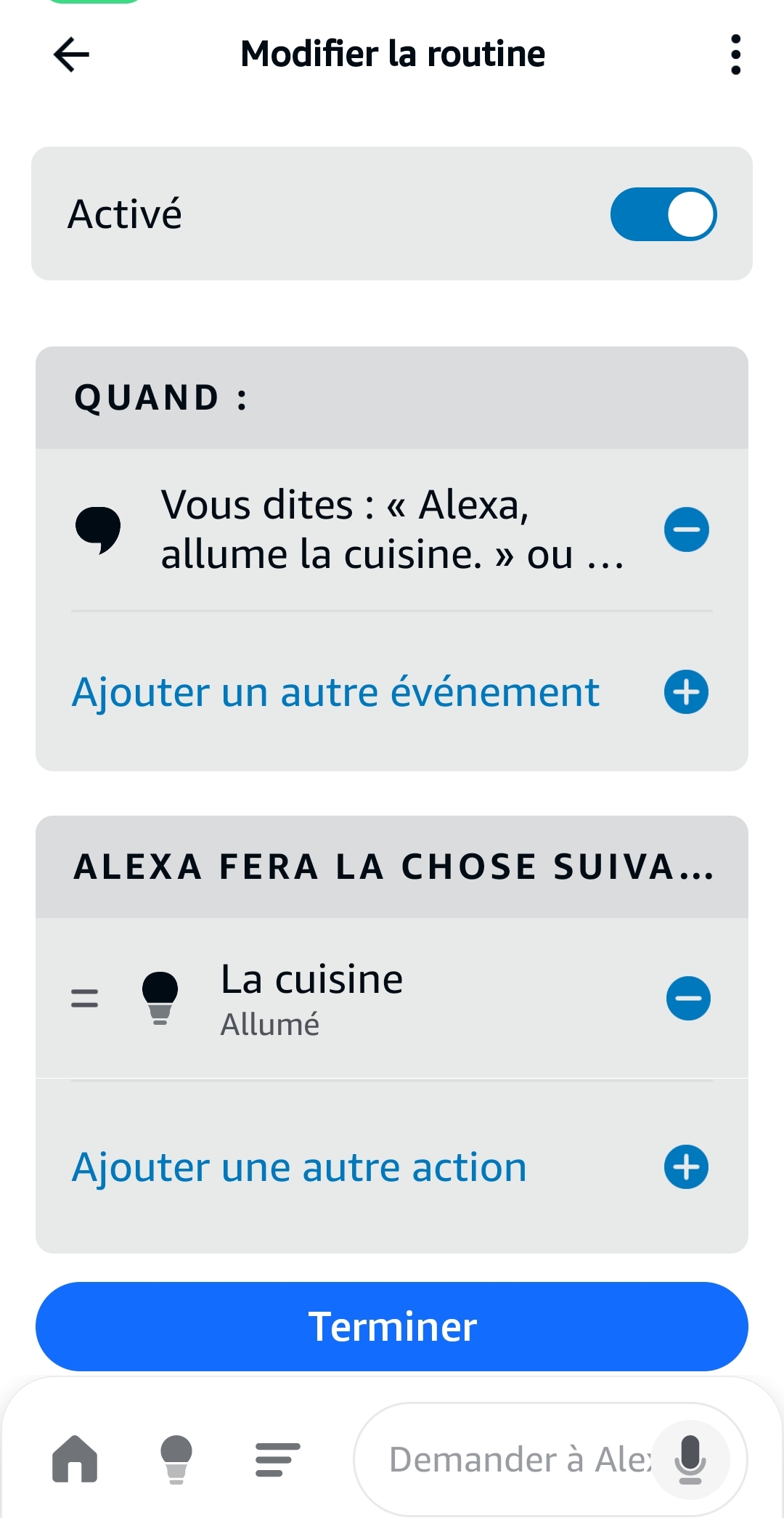 Normalement la routine Alexa permet de créer les phrases et réalise l’action.