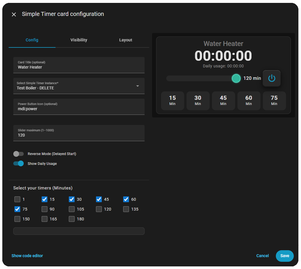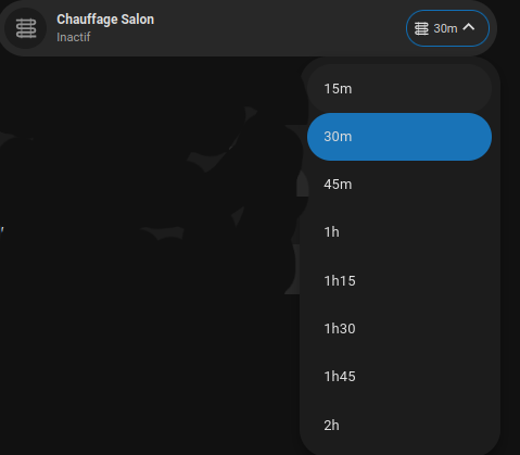Tu peux aussi mettre une durée dans le timer via une automatisation déclenchée par n’importe quoi. Par exemple j’ai un bouton à côté du sèche serviette : simple clic ou double clic → 1h ou 2h de sèche serviette activé. Simple clic si il est activé → désactiver. Tiens, je te mets le YAML