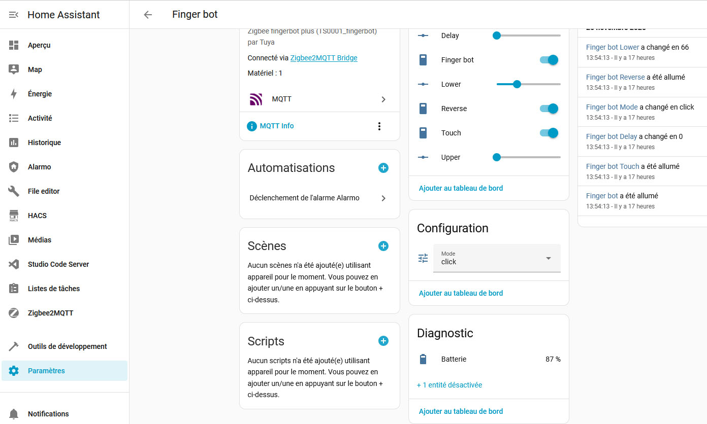 La seule contrainte, c’est de désactiver de nouveau l’interrupteur si le Finger bot a fonctionné (car il reste dans l’état actif)