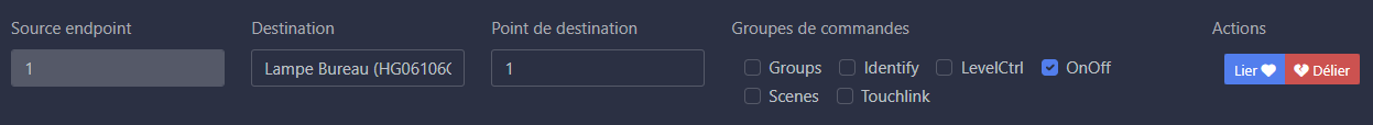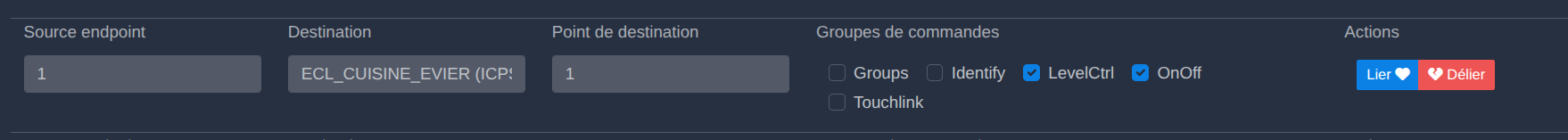 Merci. Effectivement en appuyant sur la télécommande pendant que tu bindes ça marche mieux (enfin presque, j’ai dû le faire trois fois car certains groupes (clusters) ne s’enregistraient pas dans la liaison)