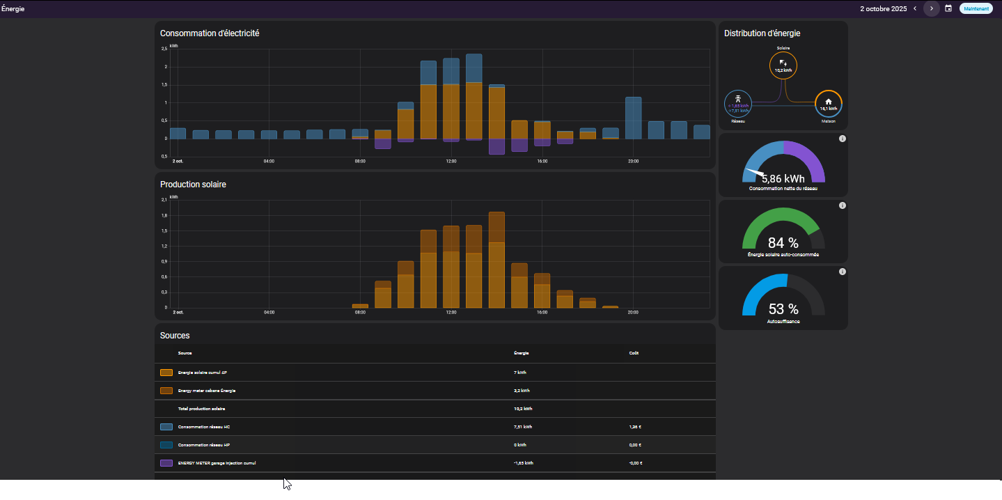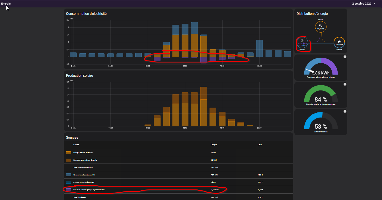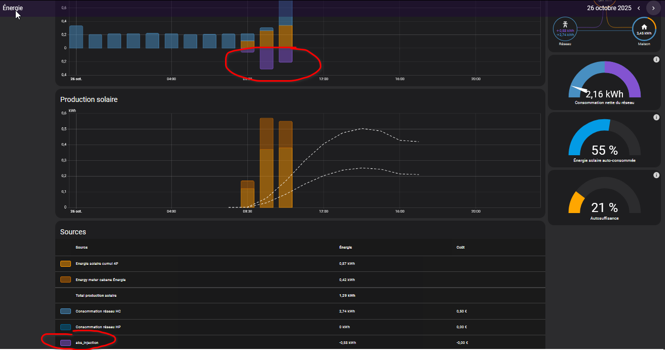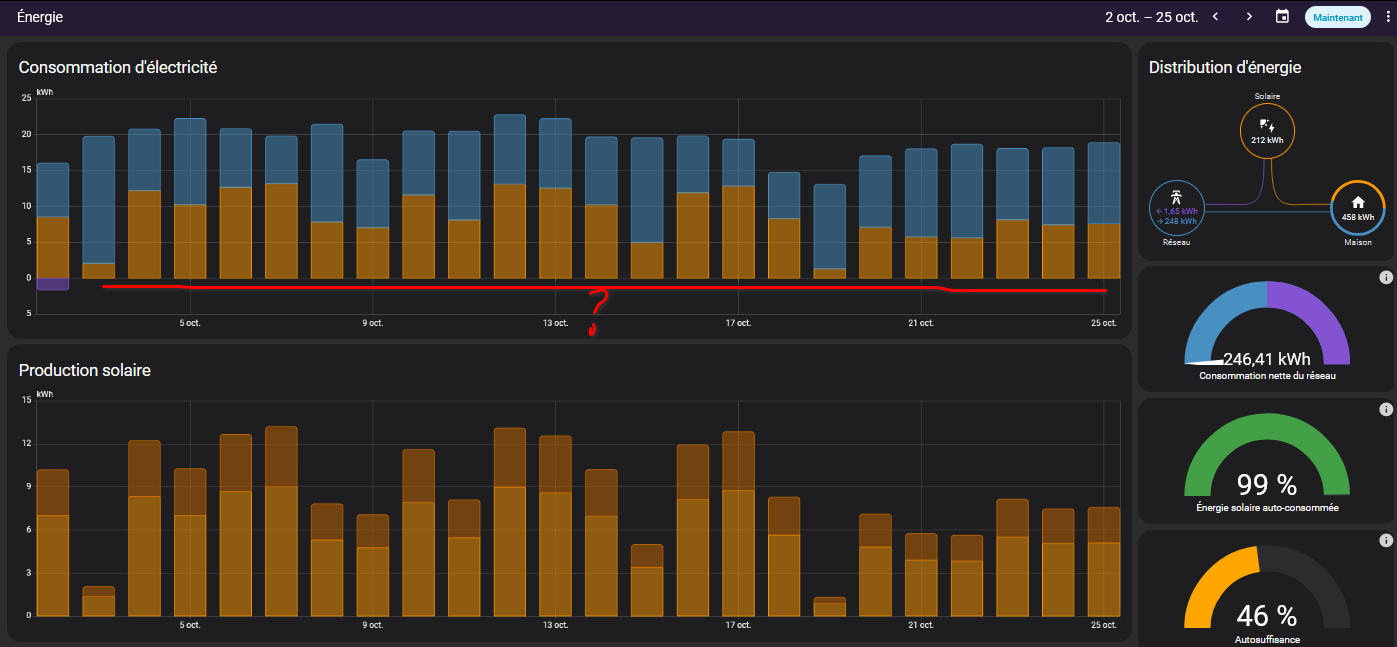 Depuis le 3 octobre j’ai remarqué que je n’avais plus d’injection dans le panneau Energie ? Je me suis dis d’abord que vu que le soleil donne moins, j’allais avoir moins d’injection car moins de production par rapport à la belle saison qui se termine… Mais j’ai trouvé bizarre de ne plus en avoir du tout depuis maintenant 3 semaines ?
