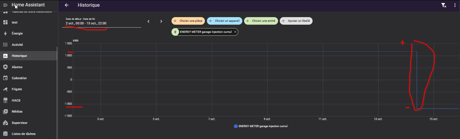 Avant il était bien positif comme on peut le voir ci dessous et plus de remontée depuis le 3 oct (une mise à jour de HA ou plutot de l’appareil ?) et de retour le 14 Oct mais en négatif ?