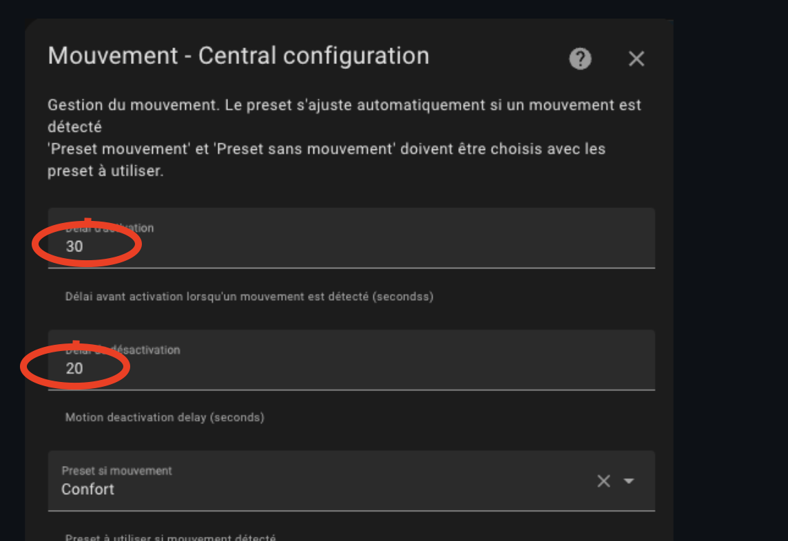 Ma maison est basé sur un système de mode (comme beaucoup je pense): absent, présent, vacance et invité.J’ai mis du temps à comprendre que je pouvais utiliser seulement 2 ordres (confort et frost_protection par exemple). Mon idée était de faire : absent→ hors gel, présent→ eco et invités → confort.