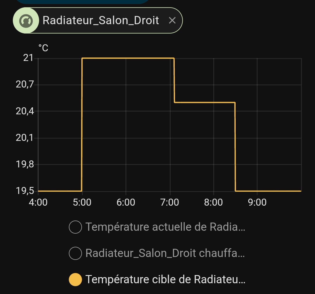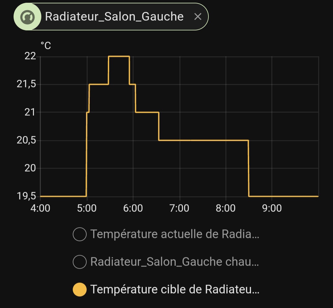 Pour les autres pièces, j’ai parfois 2 capteurs, et même 3 dans le salon. Mais pour ce dernier les deux autres sont plus loin, et il fait plus frais dans ces zones… j’ai peur que ça ne pousse le radiateur à chauffer plus…