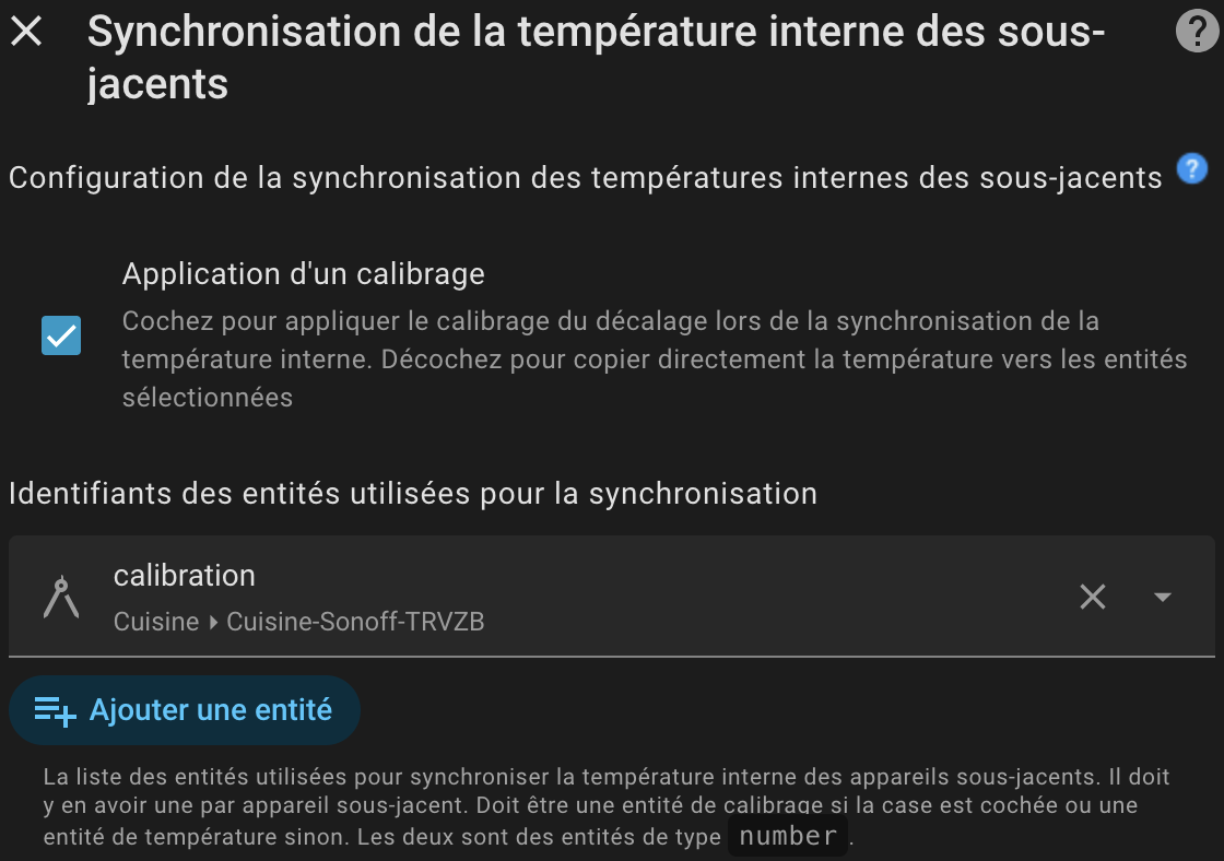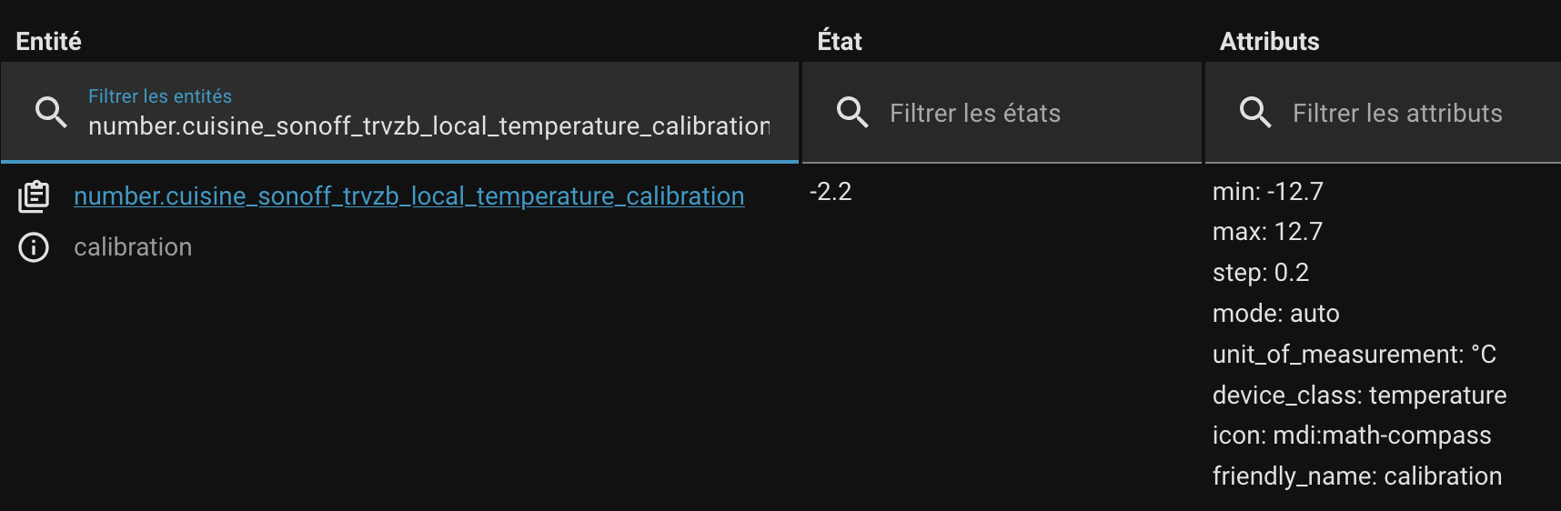 Es-tu sûr que ‹ calibration cuisine-Sonoff-TRVZB › est bien l’entité de calibration (+/- 12.7° dans Z2M)