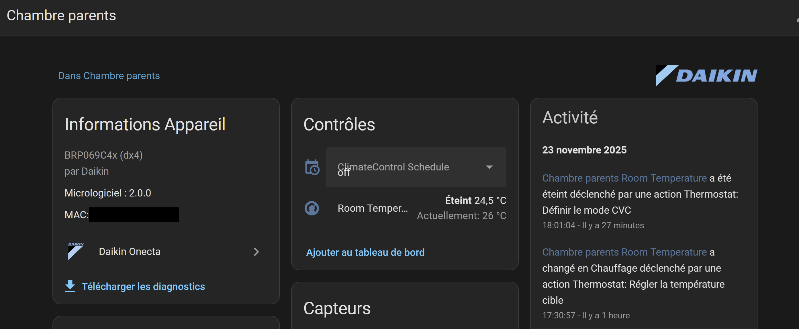 Par contre, la limitation de 200 requêtes par jour sur le cloud Daikin est vraiment pénalisante…