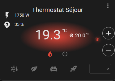 A côté de ça, je remarque sur la Versatile Thermostat UI Card que le chiffre en haut à gauche à côté de l’éclair ne correspond ni à la puissance totale des radiateurs, ni à la moitié de la puissance total, ni à la puissance des radiateurs commandés par le switch allumé quand un seul des deux a été commandé (qu’on ne peut de toute façon par renseigner dans la configuration) . A quoi correspond ce chiffre ? Par exemple sur la capture ci-dessous, c’est les deux radiateurs pour une puissance de 3000W qui étaient commandés.